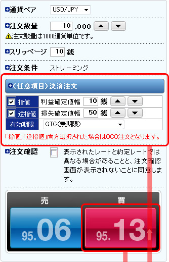 【取引例】米ドル/円を95.13円で10,000通貨「買」注文した場合