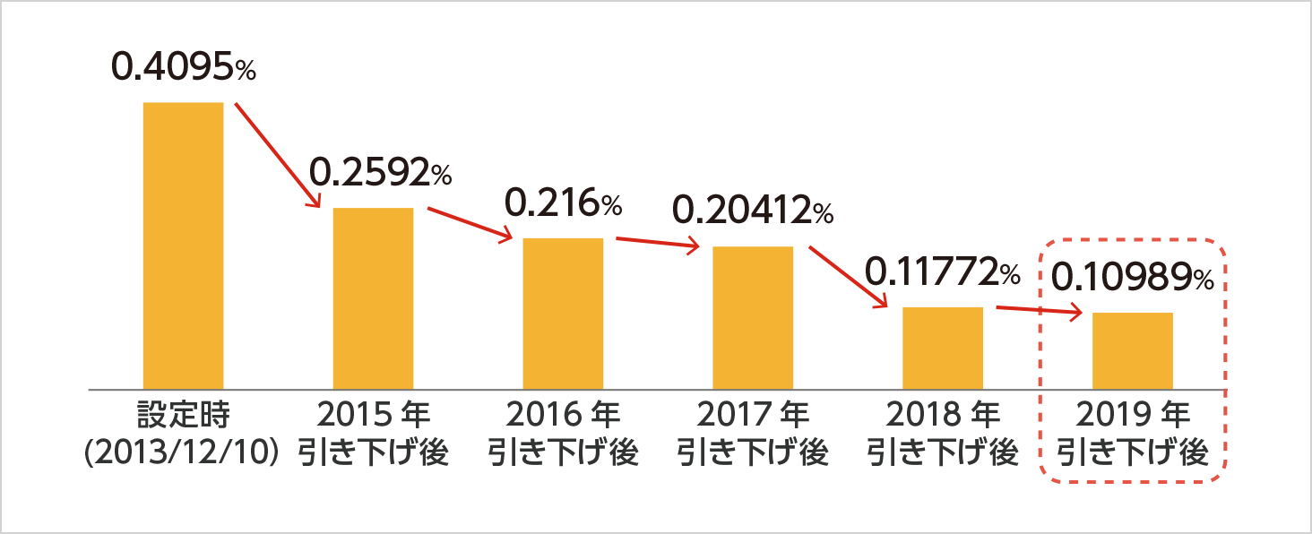 コストにこだわり、シリーズで過去5回の信託報酬率(運用管理費用)引き下げを実施