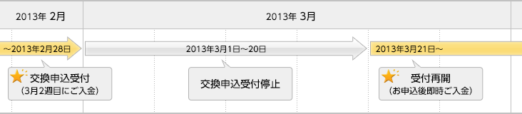 2013年3月21日(木曜日)より、交換申込の受け付けを再開いたします。